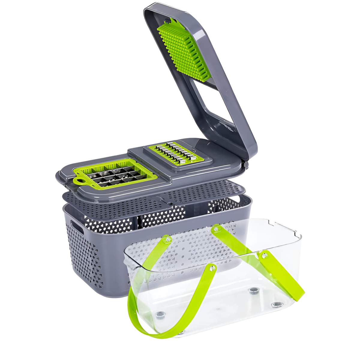 Lamele cu design inovator asigura o taiere uniforma si eficienta, iar caserola inclusa faciliteaza colectarea ingredientelor proaspete, fara a face dezordine in bucatarie. Manerul de protectie nu doar asigura siguranta utilizarii, ci si adauga un plus de confort. In plus, combinarea culorilor verde si gri confera acestei razatoare un aspect modern si atragator in orice spatiu de bucatarie.