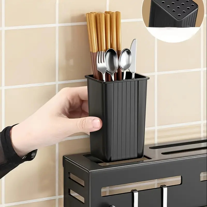 Capacitate mare de depozitare: Raft de depozitare cu 8 carlige, doua cutii detasabile pentru cutite si furculite si 4 pozitii pentru cutite. Exista suficient spatiu de depozitare pentru iubitorii culinari.