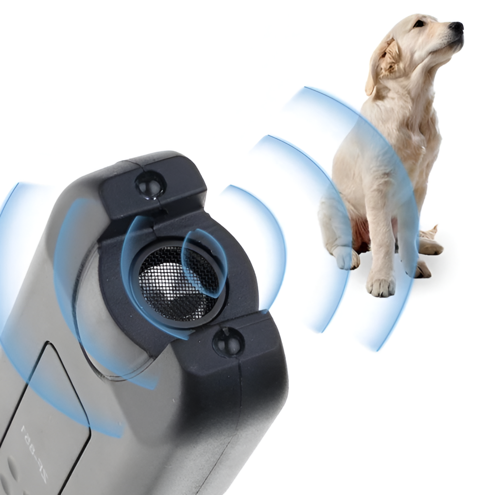 Cu un nivel sonor puternic de 130dB, acest aparat emite ultrasunete care sunt percepute de caini, determinandu-i sa se indeparteze fara a le face vreun rau. Dimensiunile compacte de 13x4.5x2.5 cm fac ca aparatul sa fie usor de transportat si de folosit in orice situatie.